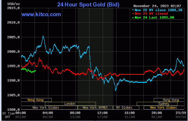 قیمت هر اونس طلا امروز در لحظه تنظیم این گزارش با نوسان جزئی 1 دلاری به 1994رسید.
