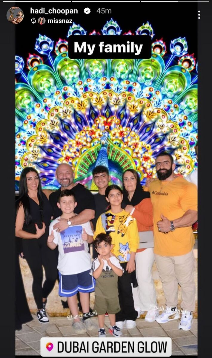 هادی چوپان قهرمانی ایرانی رشته پرورش اندام تصویری تازه از تیپ خود و خانواده اش در یک کشتی تفریحی در دبی منتشر کرده است.