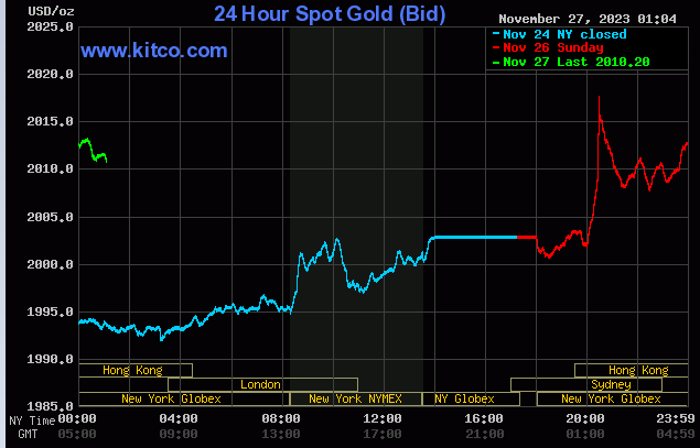 قیمت هر اونس طلا امروز در لحظه تنظیم این گزارش با 8 دلار افزایش به 2012 دلار رسید