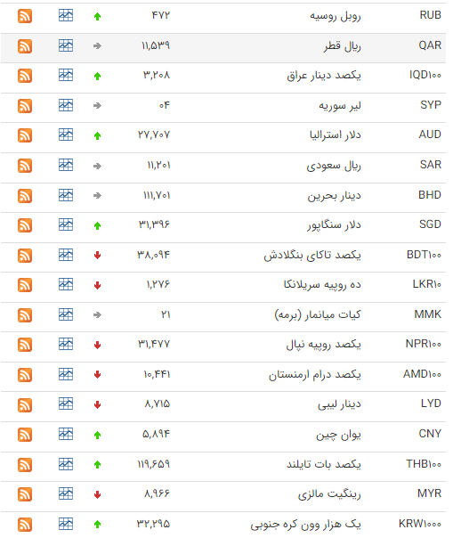 هر یوان چین هم ۵۲ هزار و ۹۳۸ ریال خرید و ۵۳ هزار و ۴۱۹ ریال فروخته شد.