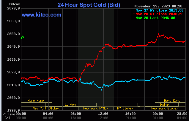 قیمت هر اونس طلا امروز در لحظه تنظیم این گزارش با 32 دلار افزایش به 2048 دلار رسید.