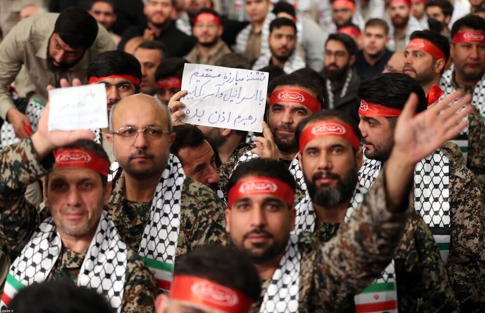 تصویری از یکی از بسیجیان در دیدار با رهبری منتشر شده که در کاغذنوشتهای برای اعزام به غزه از رهبری اذن خواسته است. در پلاکارد او نوشته شده است؛«تشنه مبارزه مستقیم با اسرائیل و آمریکاییم، رهبرم اذن بده»