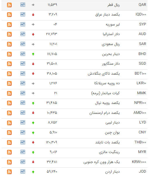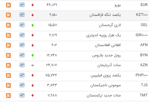 بر این اساس نرخ رسمی یکصد ین ژاپن و یوان چین افزایش و نرخ یورو و لیر ترکیه کاهش یافت.