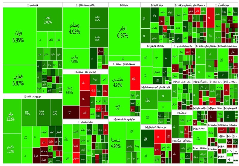 گفتنی است سه نماد «فولاد»، «فملی» و «شستا» بیشترین تأثیر در شاخص کل بورس و سه نماد «آریا»، «هرمز» و «خاور» بیشترین تأثیر را در شاخص فرابورس داشتهاند، همچنین سه نماد «فولاد»، «شستا» و «وبصادر» سه نماد پرتراکنش بازار بورس و سه نماد «کرومیت»، «فصبا» و «کرمان» سه نماد پرتراکنش در بازار فرابورس در روز جاری بودند.