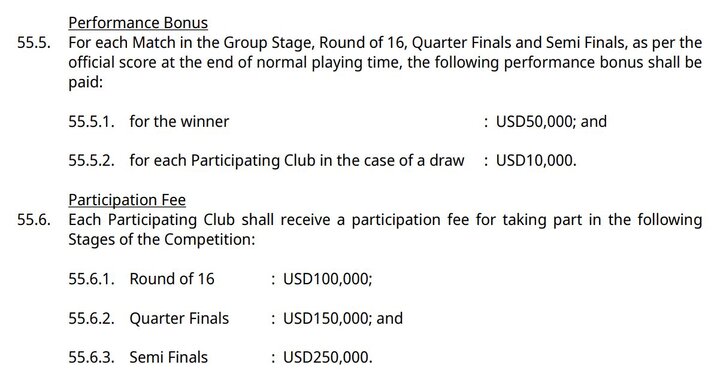همچنین این تیم بابت کسب جواز حضور در مرحله حذفی مبلغ ۱۰۰ هزار دلار از AFC میگیرد و به این ترتیب جمع دریافتیهای خود در پایان مرحله گروهی را به عدد ۲۶۰ هزار دلار میرساند. اگر هر دلار آمریکا را ۵۰ هزار تومان در نظر بگیریم سپاهانیها حدود ۱۳ میلیارد تومان تا به اینجای کار از کنفدراسیون فوتبال آسیا دریافت خواهند کرد که رقم قابل قبولی برای این تیم خواهد بود.
