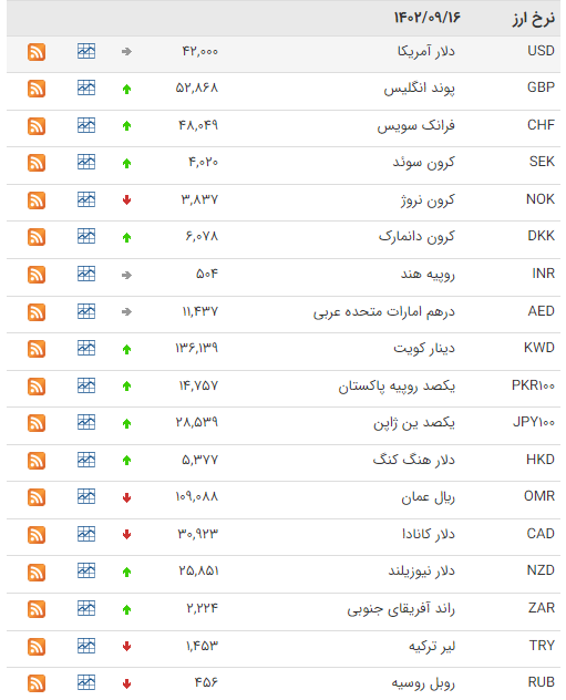 بانک مرکزی امروز پنجشنبه، نرخ رسمی ۴۶ ارز را اعلام کرد که بر اساس آن نرخ ۲۴ ارز افزایش و نرخ ۱۴ ارز کاهش یافت، نرخ باقی ارزها ثابت ماند.