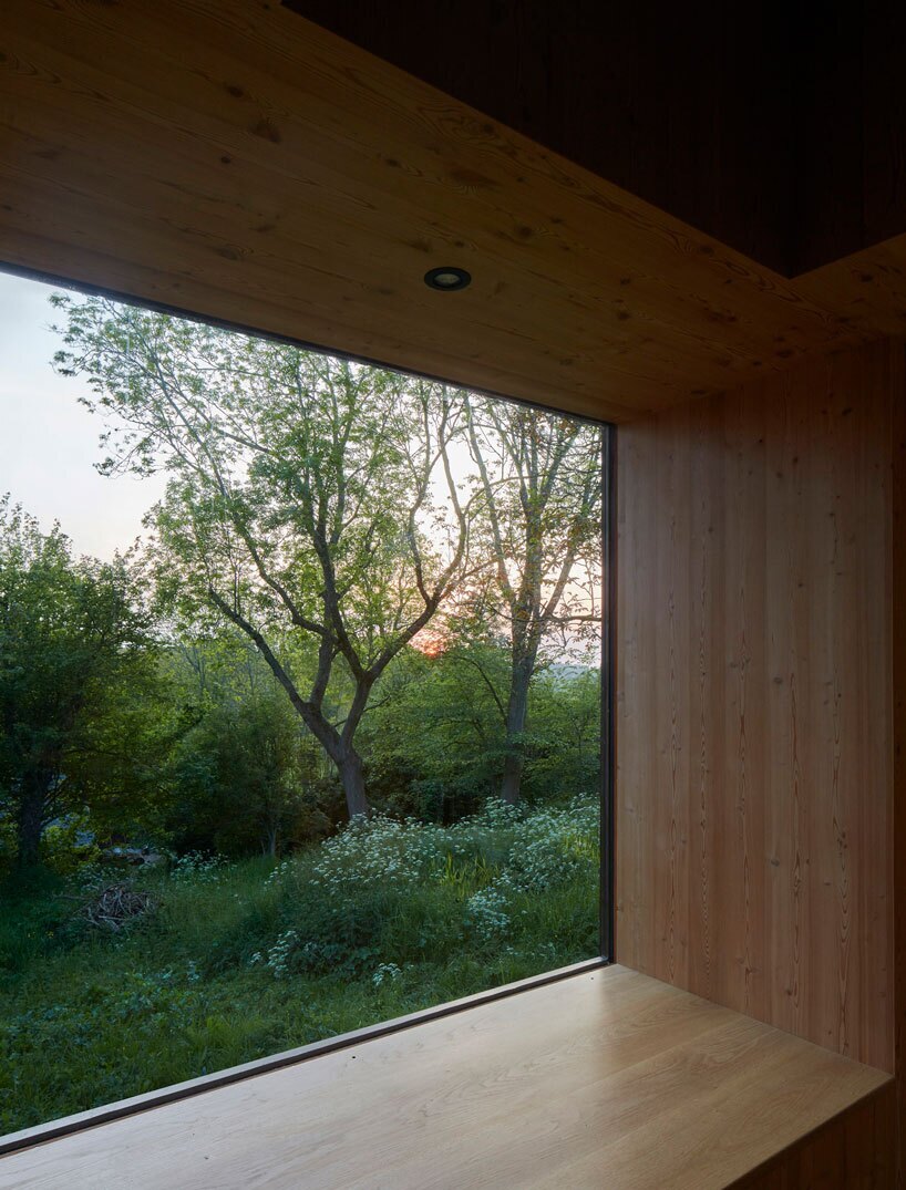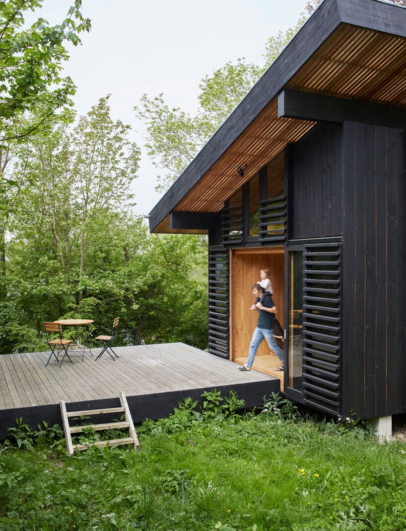 پنهان در میان درختان و بوته‌های باغی در Longueil، نرماندی، فرانسه، این خانه کوچک چوبی توسط شرکت معماری اربا (arba) طراحی شده است.