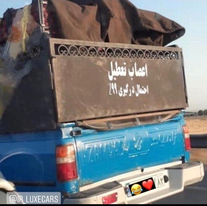 پشت یک نیسان آبی نوشته شده اعصاب تعطیل، احتمال درگیری 99% .