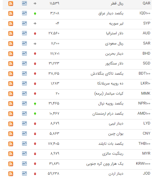 بانک مرکزی امروز سه شنبه، نرخ رسمی ۴۶ ارز را اعلام کرد که بر اساس آن نرخ ۱۱ ارز افزایش و نرخ ۲۷ ارز کاهش یافت، نرخ باقی ارزها ثابت ماند.