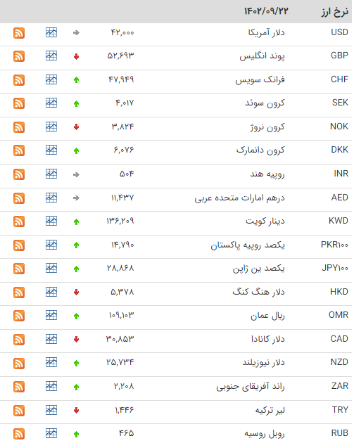 هر پوند انگلیس ۵۳۰ هزار و ۳۳۲ ریال خرید و ۵۳۵ هزار و ۳۴۸ ریال فروخته شد. هر لیر ترکیه هم ۱۴ هزار و ۵۵۲ ریال خرید و ۱۴ هزار و ۶۸۲ ریال فروخته شد.