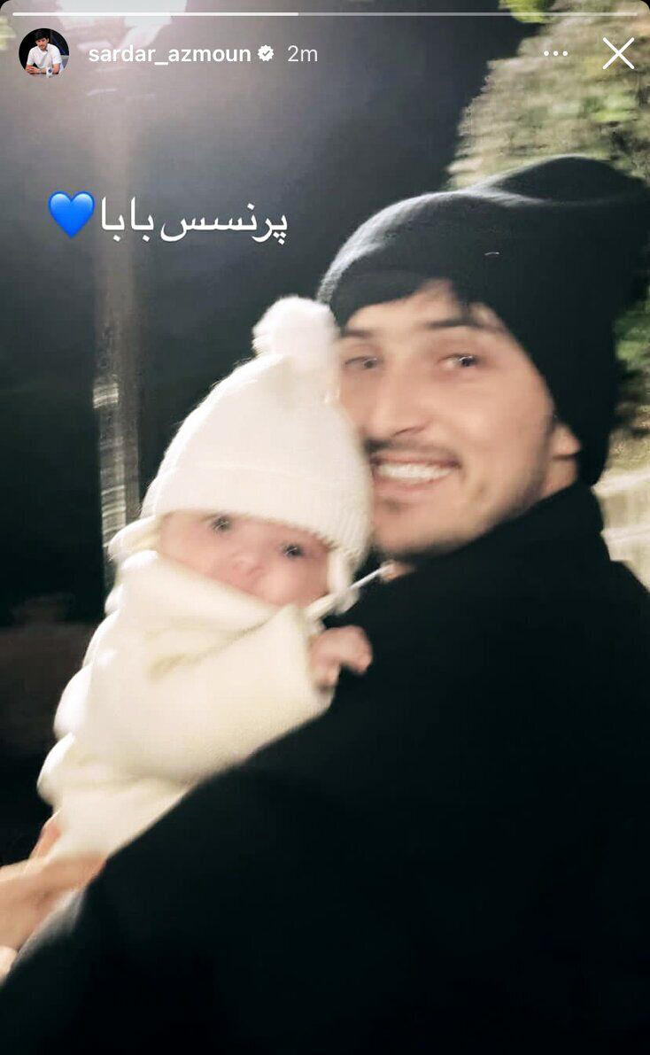 سردار آزمون، ستاره ایرانی باشگاه آاس رم ایتالیا چندی پیش تولد نخستین فرزند خود را جشن گرفت.او دیشب یک استوری از خودش کنار دختر کوچکش منتشر کرد.