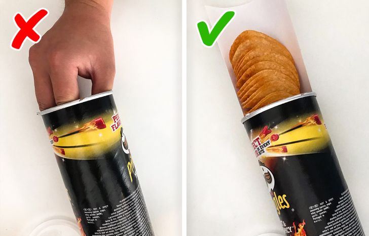 ۳- چیپس های پرینگلز را با استفاده از کاغذ A4 بخورید