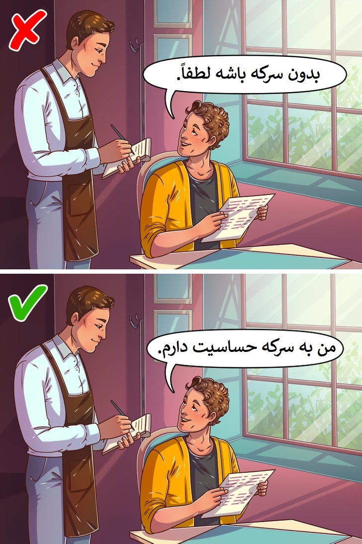 ۹- هنگام سفارش غذا به حساسیت های غذایی تان اشاره کنید
