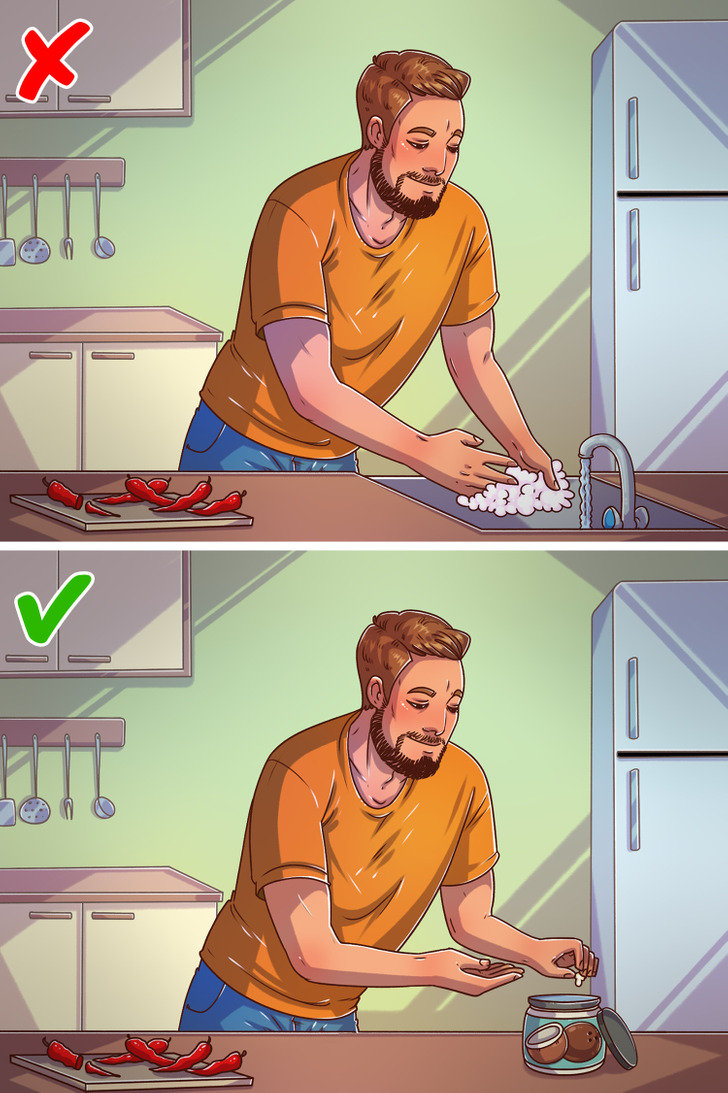 ۸- بعد از دست زدن به فلفل چیلی از روغن نارگیل استفاده کنید