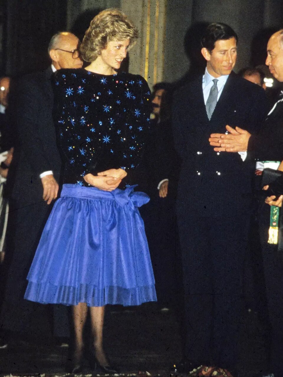 پرنسس دایانا و همسرش شاهزاده چارلز؛ در یک مهمانی شام در ایتالیا - آوریل ۱۹۸۵