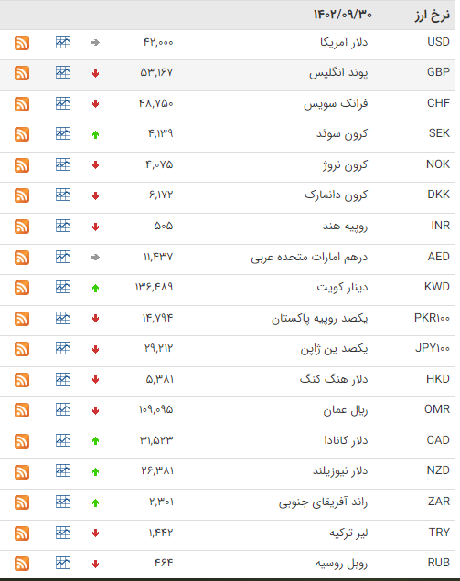 بانک مرکزی امروز پنج شنبه (30 آذر)، نرخ هر پوند را ۵۳ هزار و 167 ریال و یورو را ۴۶ هزار و 17 ریال اعلام کرد