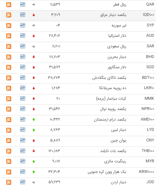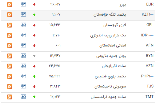 بانک مرکزی امروز پنج شنبه، نرخ رسمی ۴۶ ارز را اعلام کرد که بر اساس آن نرخ 12 ارز افزایش و نرخ 27 ارز کاهش یافت، نرخ باقی ارز‌ها ثابت ماند.