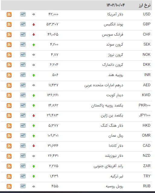 بانک مرکزی امروزدوشنبه (4 دی)، نرخ هر پوند را ۵۳ هزار و 307 ریال و یورو را ۴۶ هزار و 199 ریال اعلام کرد.