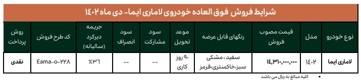 فروش فوق العاده لاماری ویژه دی ماه 1402 آغاز شد+قیمت