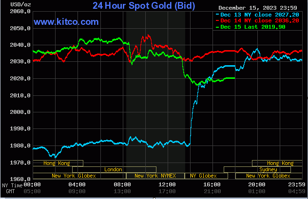 طلا در ۴ دسامبر، با شرط کاهش سیاست پولی ایالاتمتحده در اوایل سال ۲۰۲۴ به بالاترین سطح خود یعنی ۲۱۳۵ دلار و ۴۰ سنت رسید و از رکورد قبلی که در سال ۲۰۲۰ کاهش یافته بود، پیشی گرفت.