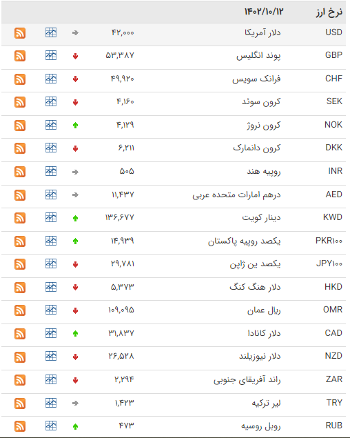 هر یوان چین هم ۶۰ هزار و ۴۲ ریال خرید و ۶۰ هزار و ۵۸۷ ریال فروخته شد.