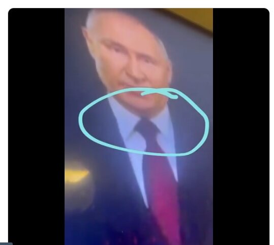 اگرچه در محتوای سخنرانی هیچ چیز غیرعادی دیده نشد، اما پس از اینکه مردم چیزی عجیب در مورد ظاهر پوتین مشاهده کردند، کلیپ هایی در شبکه های اجتماعی منتشر شد. «ایگور سوشکو» مدیر اجرایی گروه تحقیقاتی «باد تغییر» یک سازمان غیرانتفاعی مستقر در واشنگتن، به ناحیه اطراف کراوات پوتین مشکوک شد و در شبکه اجتماعی ایکس نوشت: "سخنرانی سال نو پوتین توسط کامپیوتر ساخته شده است. به ناحیه گردن توجه داشته باشید."