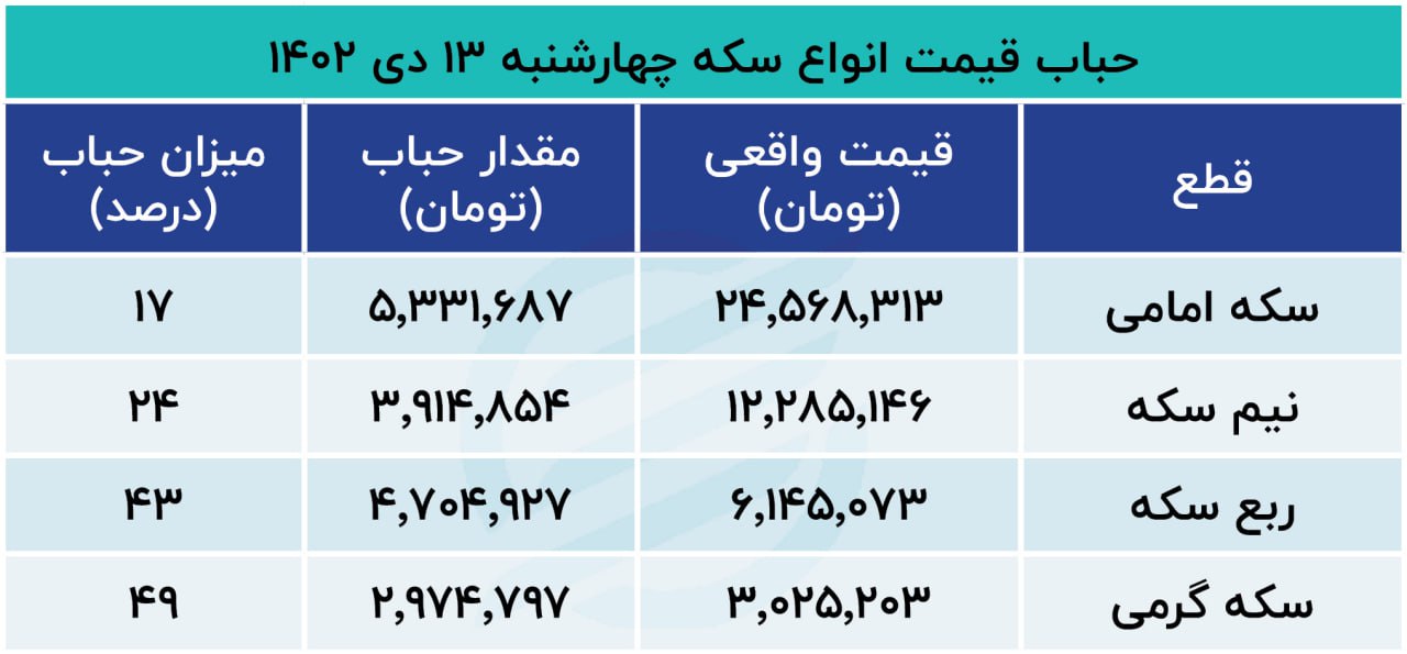 بررسیها نشان میدهد همزمان با ریزش قیمت طلا، قیمت سکه امامی هم در معاملات پشت خطی سهشنبه شب عقبنشینی کرد و کانال ۳۰ میلیون تومان را از دست داد. آنطور که برخی از معاملهگران شب گذشته مدعی بودند قیمت سکه امامی با ۲۹ میلیون و ۹۰۰ هزار تومان به کار خود خاتمه داد که نسبت به عصر سه شنبه ۲۵۰ هزار تومان ارزان شده بود.