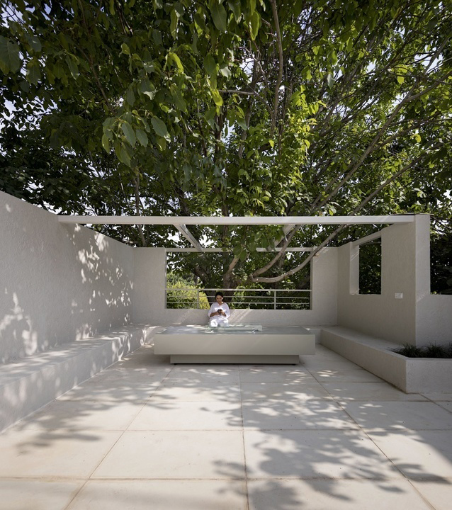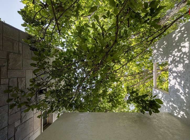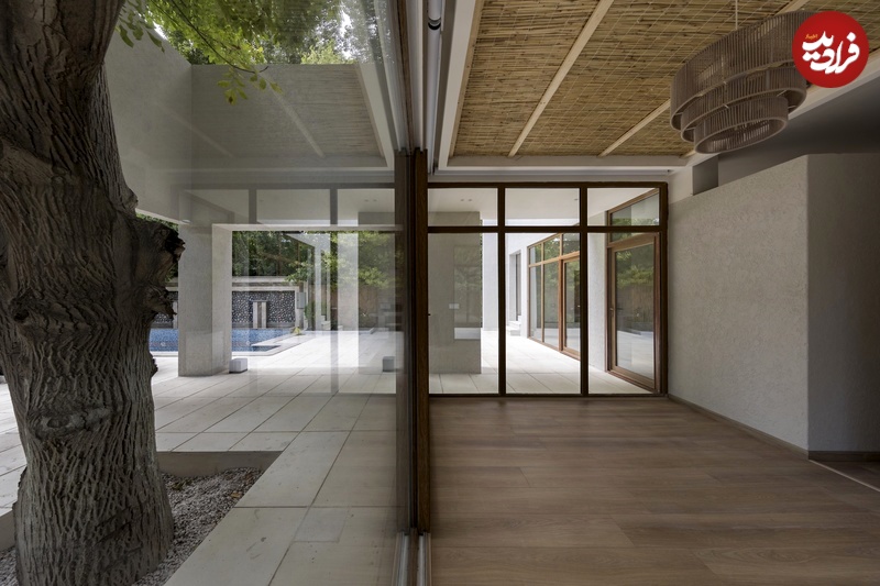 این فضاها انگار کاملا بر «محور» درخت طراحی شدهاند، طوری که شکوه و سرزندگی درخت را بیشتر در چشم ساکنان خانه جلوه میدهند. درخت اینجا بخشی از باغچۀ خانه نیست، بخشی از روح خود خانه است؛ انگار خانه و درخت در تعاملی در خشان، به زیبایی یکدیگر افزودهاند.