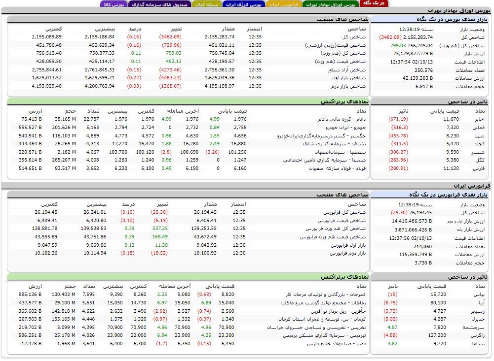 در فرابورس ایران هم شاخص کل امروز با 25 واحد کاهش به رقم 26 هزار و 194 واحد رسید. ارزش بازار اول و دوم فرابورس ایران به یک میلیون و 441 هزار میلیارد تومان رسید.