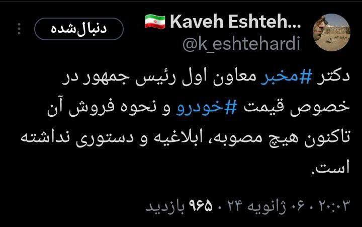 ادعای دستور مخبر درباره قیمت خودرو تکذیب شد.