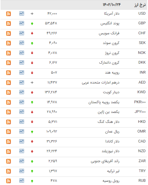 امروز یکشنبه (24 دی)، نرخ هر پوند 53 هزار و 548 ریال و یورو را 46 هزار و 16 ریال اعلام شد.