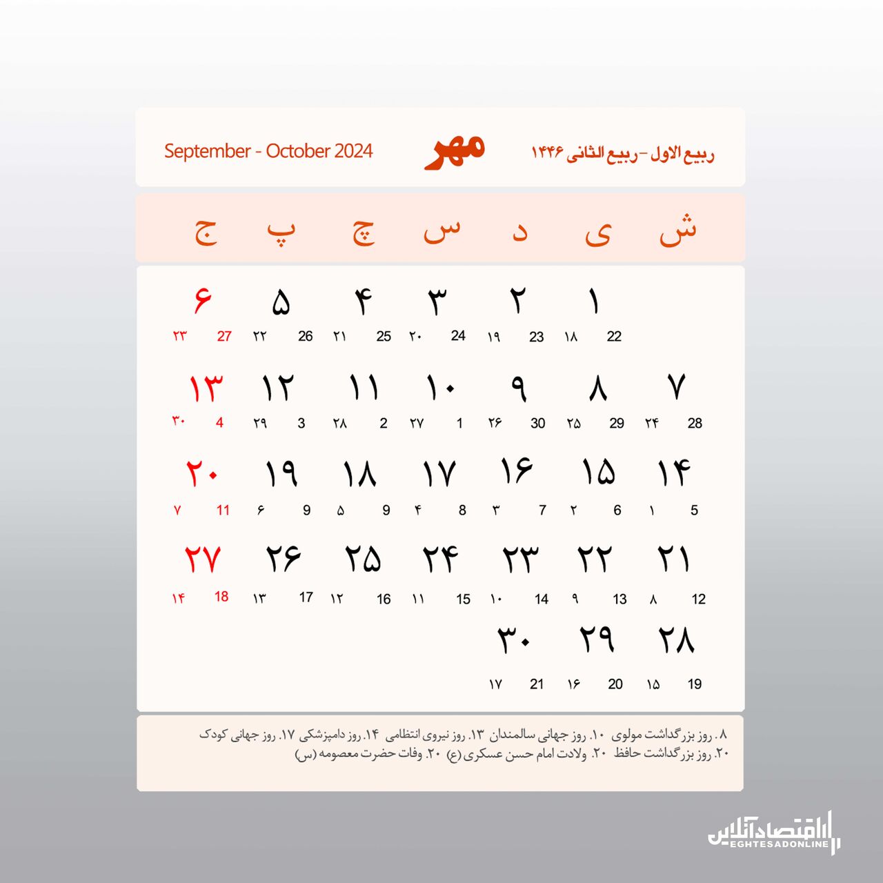 مناسبت ها و تعطیلات رسمی سال ۱۴۰۳ (آبان ماه)