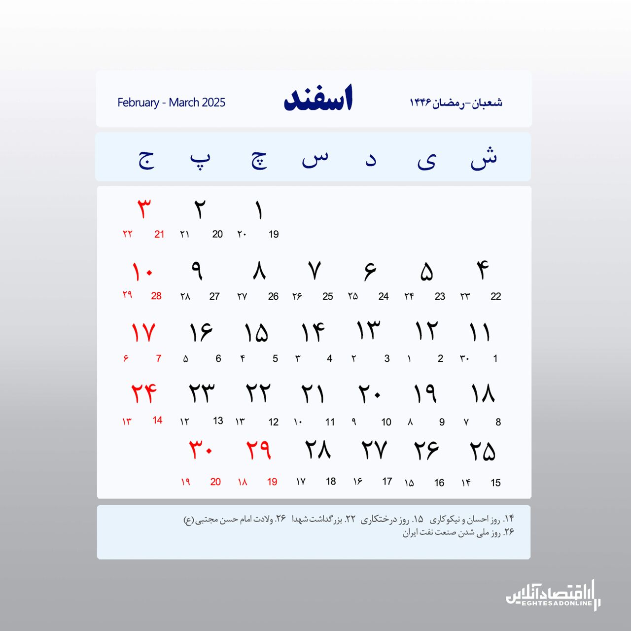 مناسبت ها و تعطیلات رسمی سال ۱۴۰۳ (اسفند ماه)