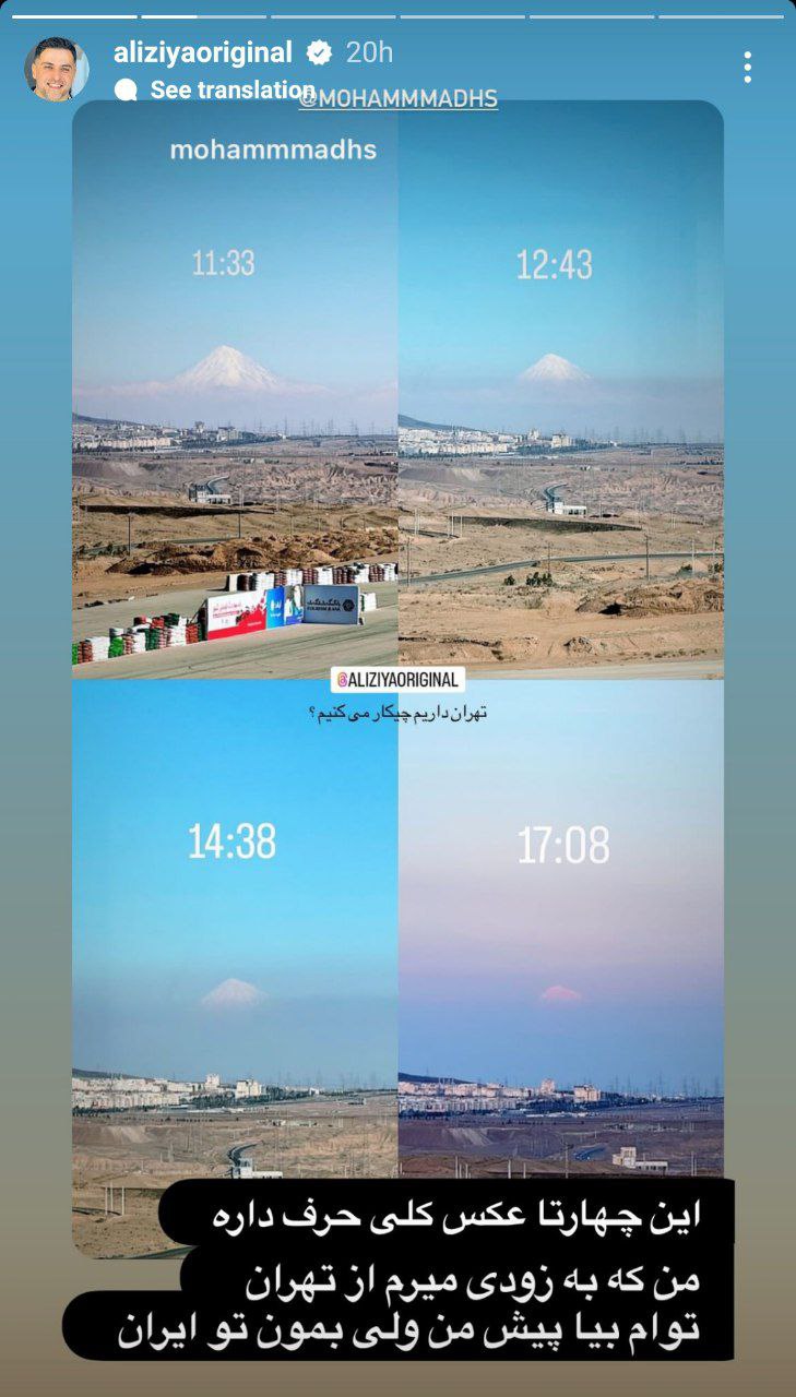 علی ضیا استوری جدیدی درباره مهاجرت از تهران منتشر کرده است. او در این استوری به کاربران فضای مجازی توصیه کرده که از ایران مهاجرت نکنند.