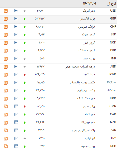 امروز یکشنبه (1 بهمن)، نرخ هر پوند 53 هزار و 357 ریال و یورو 45 هزار و 817 ریال اعلام شد.