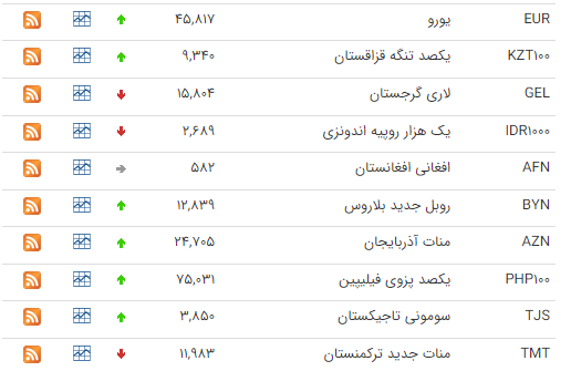 هر یورو ۴۲۷ هزار و ۲۸۱ ریال خرید و ۴۳۱ هزار و ۱۶۱ ریال فروخته شد. هر پوند انگلیس ۴۹۷ هزار و ۵۹۱ ریال خرید و ۵۰۲ هزار و ۱۱۰ ریال فروخته شد.