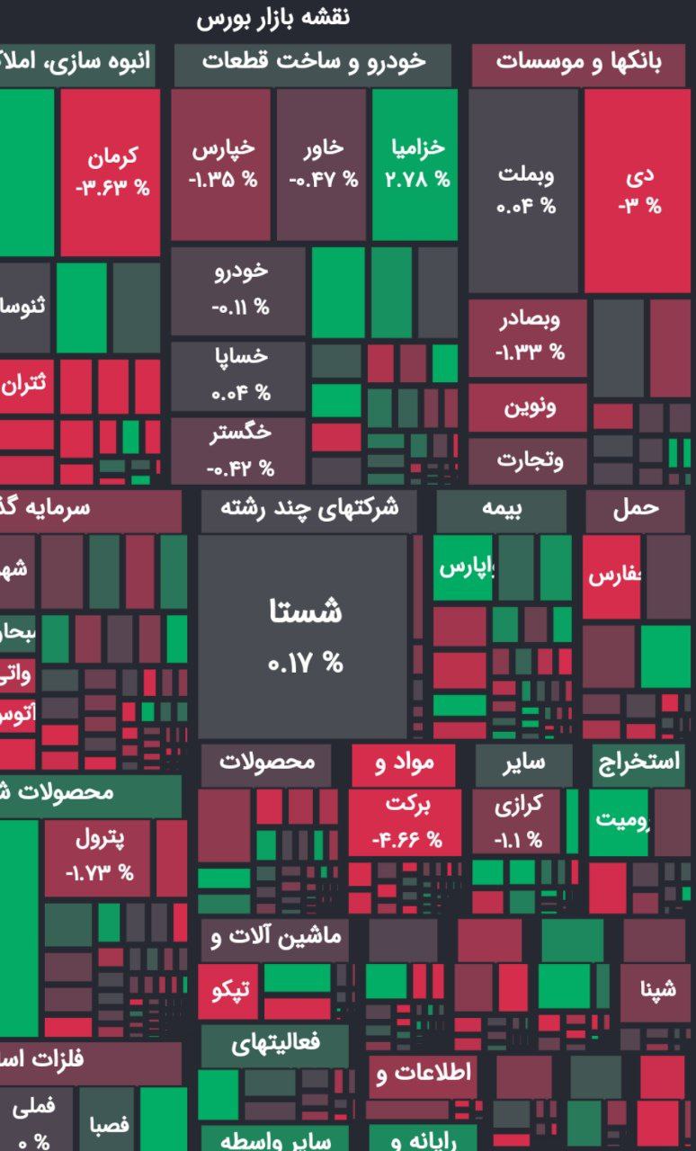 شاخص کل هم وزن نیز با افت ۱۷۸۴ واحد در عدد ۷۳۸ هزار و ۶۵۲ واحد ایستاد.
