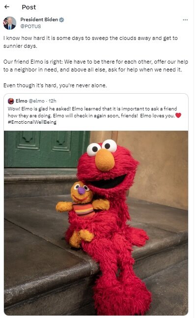 بایدن در این پست نوشت:می دانم بعضی روزها چقدر سخت است که ابرها را بزدایی و به روزهای آفتابی تر برسی