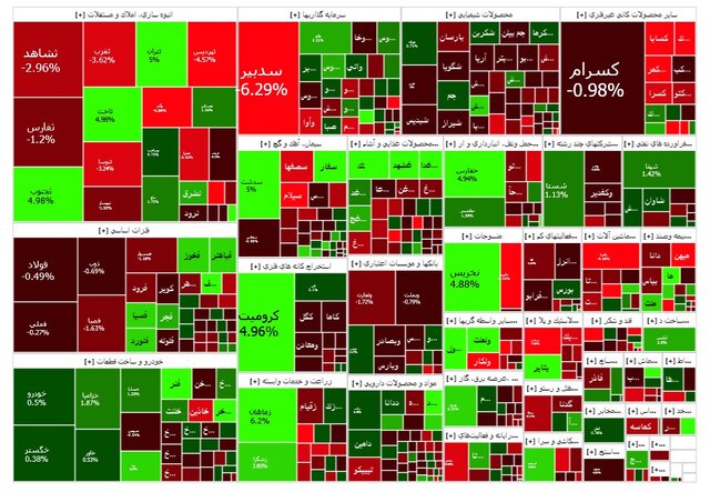 فولاد، پارسان و وبملت بیشترین تاثیر منفی را بر شاخص کل داشتند و فخوز مثبت شد. از نمادهای پرتراکنش نیز میتوان به داتام، شستا، کسرام و ثشاهد اشاره کرد.