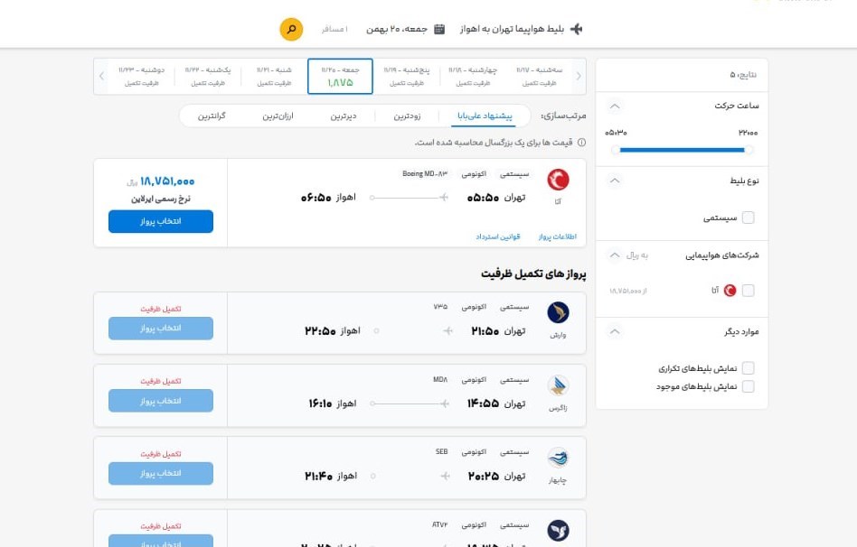 نرخ بلیت مصوب پرواز تهران ـ اهواز نیز یک میلیون و 207 هزار و 200 تومان (با احتساب مالیات و عوارض متعلقه) است، اما هواپیمایی آتا این بلیت را بهصورت سیستمی با قیمت یک میلیون و 875 هزار و 100 تومان به فروش میرساند، یعنی 55.3 درصد بالاتر.