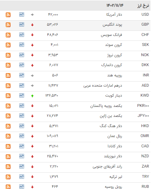 بانک مرکزی امروز شنبه ، نرخ رسمی ۴۶ ارز را اعلام کرد که بر اساس آن نرخ 9 ارز افزایش و نرخ 29 ارز کاهش یافت، نرخ باقی ارزها ثابت ماند.
