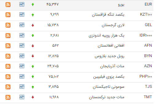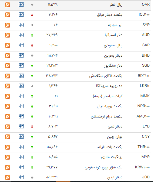 بر این اساس نرخ رسمی پوند انگليس، یورو، یکصد ين ژاپن، لير ترکيه، دلار استراليا و یوان چين افزایش و نرخ دلار کانادا، يکصد دينار عراق و افغانی افغانستان کاهش یافت.
