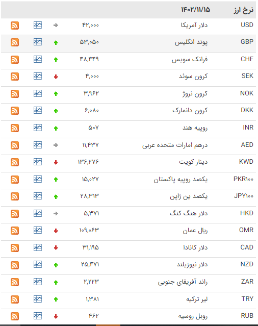 بانک مرکزی امروز نرخ رسمی ۴۶ ارز را اعلام کرد که بر اساس آن نرخ ۲۶ ارز افزایش و نرخ ۱۲ ارز کاهش یافت، نرخ باقی ارزها ثابت ماند.