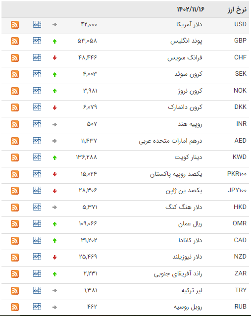 بانک مرکزی امروز نرخ رسمی ۴۶ ارز را اعلام کرد که بر اساس آن نرخ 16 ارز افزایش و نرخ 9 ارز کاهش یافت، نرخ باقی ارز‌ها ثابت ماند.