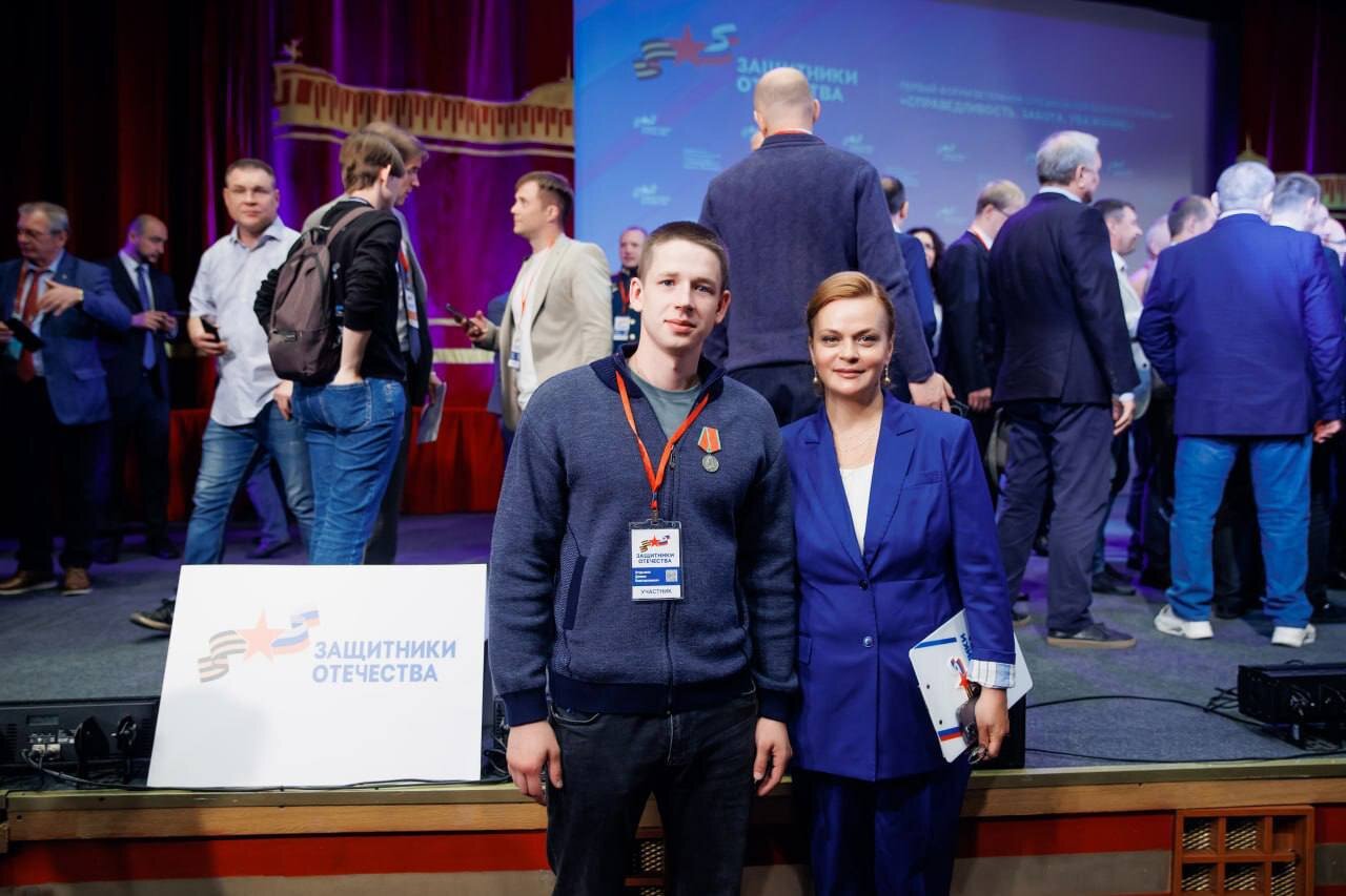 یا در این مراسم که با یکی از سربازان بازگشته از جنگ از منطقه کورسک دیدار می کند. فردی که مأموریت کمک به خانواده های قربانیان جنگ را بر عهده دارد.
