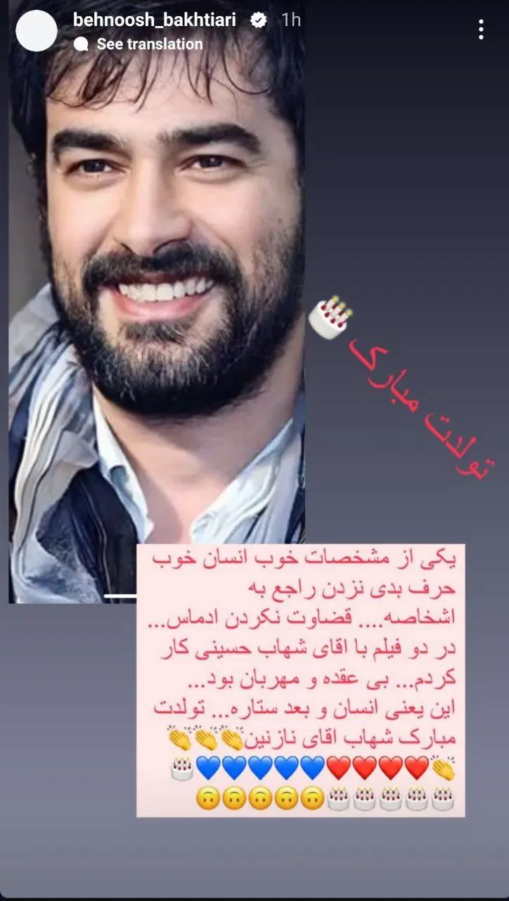 بهنوش بختیاری در استوری جدید اینستاگرام خود، تبریکی خاص برای سوپر استار سینمای ایران منتشر کرد که در ادامه می بینید.