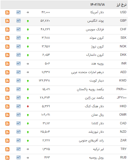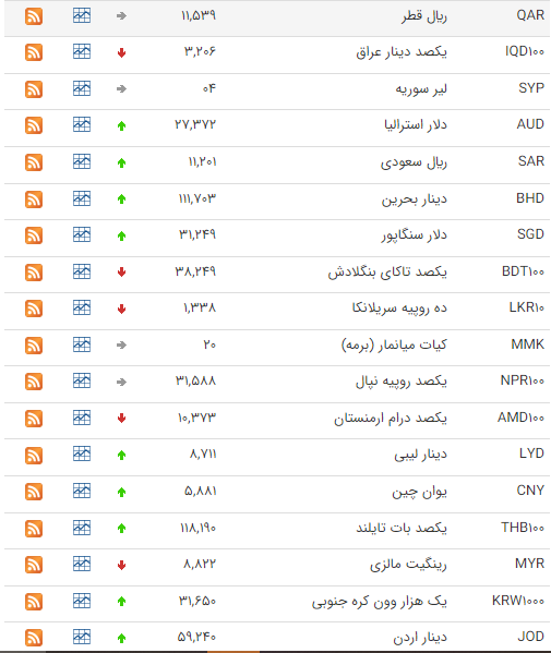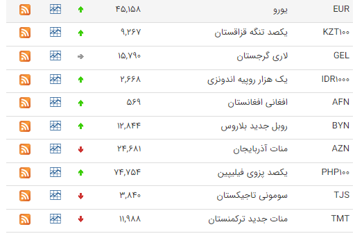 بر این اساس نرخ رسمی پوند انگلیس، یورو، یکصد ین ژاپن، افغانی افغانستان، دلار کانادا، دلار استرالیا و یوان چین افزایش و نرخ یکصد دینار عراق کاهش یافت.