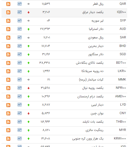بر این اساس نرخ رسمی یکصد ین ژاپن، دلار استرالیا و دلار کانادا افزایش و نرخ پوند انگلیس، یورو، یکصد دینار عراق و یوان چین کاهش یافت.