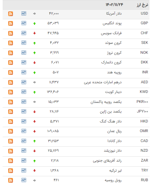 امروز سه شنبه (24 بهمن ماه)، نرخ هر پوند 53 هزار و 39 ریال و یورو 45 هزار و 247 ریال اعلام شد.