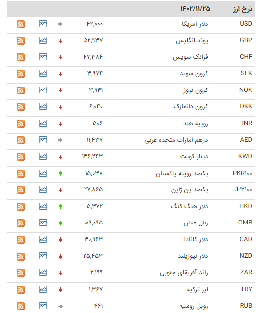امروز نرخ رسمی ۴۶ ارز را اعلام کرد که بر اساس آن نرخ 16 ارز افزایش و نرخ 23 ارز کاهش یافت، نرخ باقی ارزها ثابت ماند.